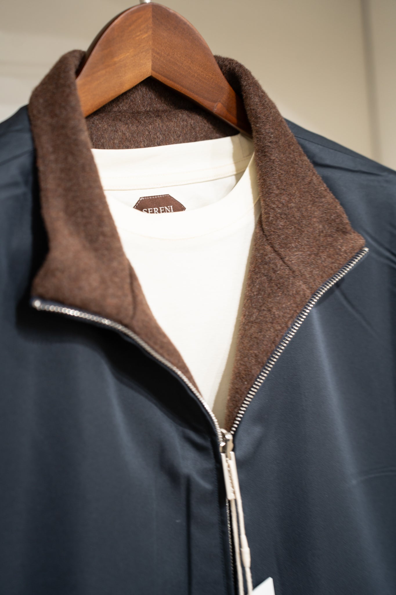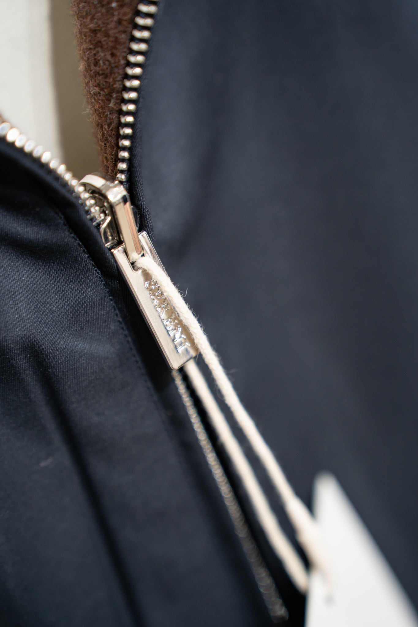 Kies tussen de verfijnde, gladde zijde in marineblauwof de warme, getextureerde wollen zijde in bruin. Met een hoge kraag en strakke rits is dit het veelzijdige kledingstuk voor moeiteloze lagen. Perfecte warmte en dubbele look voor elk seizoen.